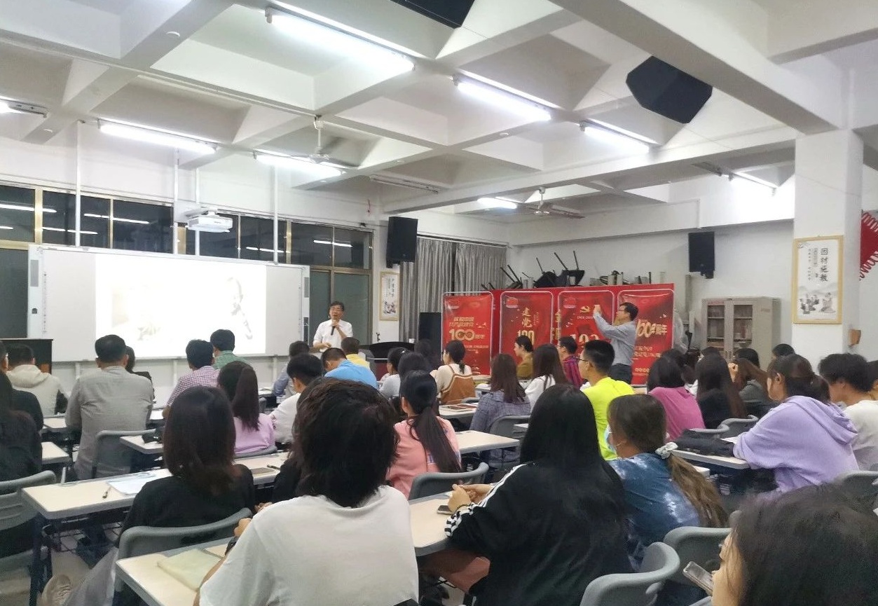 讲座中,陈教授结合艺术专业特点,从文章《谷文昌的眼睛》提及的“眼中充满忧患和殉道者般的无怨无悔”作为开篇,从“谷文昌为何等人也”入手,详细介绍谷文昌的生平事迹。强调谷文昌是“四有书记”、“永远活在人民心中的县委书记”、“共产党人的丰碑”、“东山人民心中的谷公”,将自己的一生献给党,献给人民。随后,陈教授结合谷文昌制服风沙、兴修水利、修建堤坝、修桥筑路等事迹,重点讲述谷文昌精神的丰富内涵,展现谷文昌一生的党性修养、思想品质和道德情操。最后,陈教授勉励广大师生党员认真学习并传承弘扬谷文昌精神,“画”说红色故事,用手中的画笔绽放最美青春底色。