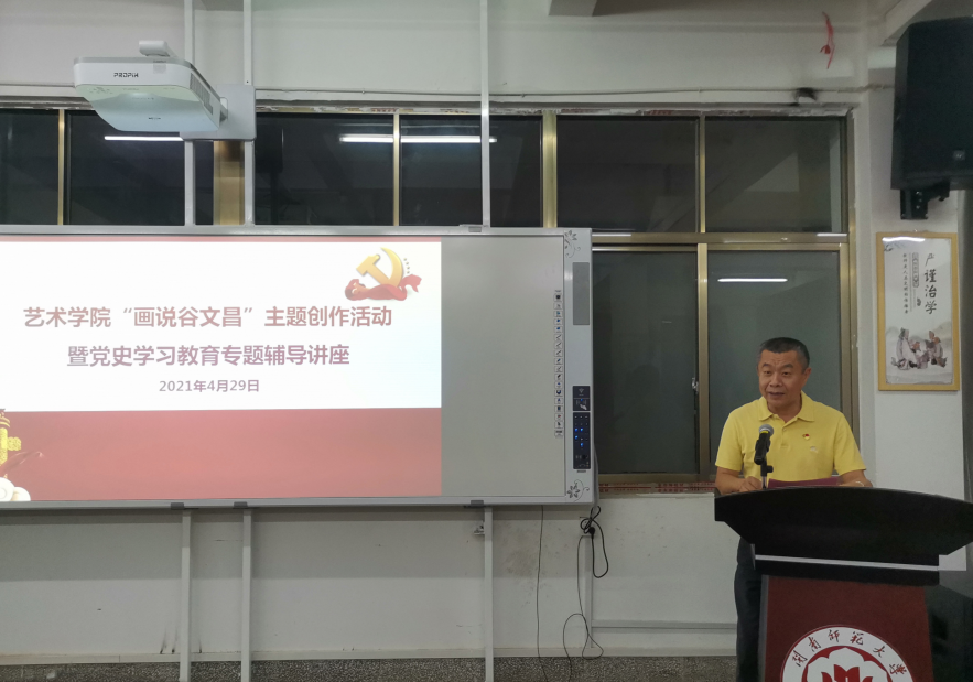 汤跃滨书记作总结发言。此次专题讲座从“四张名片“、“两个工程”、“五种精神”等方面阐释了谷文昌生动的形象,从中让我们深刻理解共产党的初心与使命。同时,也为“画”说谷文昌主题创作活动提供很多生动的素材 。希望广大党员师生,以党史学习教育为契机,以“画”说谷文昌主题创作活动为抓手,做到学史明理、学史崇德、学史增信、学史力行,在学习、工作中践行初心和使命,以优异成绩向建党100周年献礼。