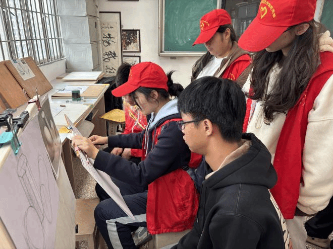 在绘画课堂上,志愿者们耐心地指导同学们调色、构图,并鼓励他们发挥想象力,创作出属于自己的作品。墙绘环节更是将校园变成了一片色彩斑斓的海洋,志愿者们与大家共同绘制出一幅幅充满童趣和正能量的画作,将校园装点得更加美丽。在志愿者的指导下,手绘教学环节让同学们体验到了艺术创作的乐趣,同学们绘画的每一步都凝聚着大家对艺术的热爱,更体现了他们对美好未来的憧憬。