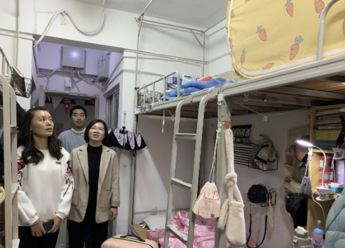 新学期,新气象,为了解员工开学初的返校情况,进一步做好院员工宿舍安全稳定工作,3月13日下午,公司党委书记汤跃滨和副书记方芳带领全体辅导员对公司员工宿舍进行了深入走访,在查看宿舍环境及员工返校情况的同时,与同学们进行了亲切的交谈,认真倾听各间宿舍的诉求。