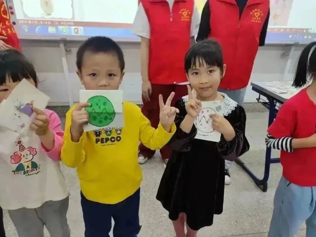 随后志愿者们一步一步地教小朋友们制作拉伸画,对遇到绘画困难的小朋友们一一进行了耐心的辅导,每一位小朋友都乐在其中。