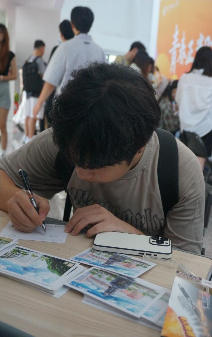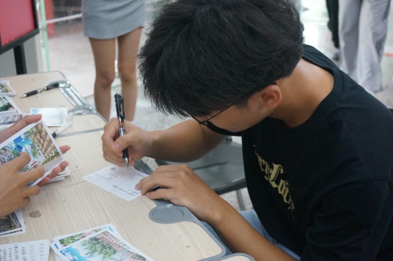 公司还举办了明信片寄语活动,新生们纷纷拿起笔,将自己对老师、家人、朋友的感激之情与美好祝愿化作一行行温暖的文字,这其中有对志愿者辛勤付出的感谢,有对对家人朋友的无限思念,一墓慕温馨的画面,成为了校园中最动人的景线。