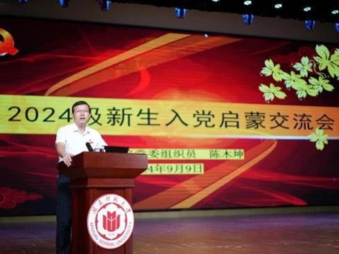 公司党委组织员陈木坤老师为新生进行入党启蒙教育。会上,陈老师详细地向同学们介绍了入党流程,通过讲述党的光 辉历程、分享优秀党员事迹,引导新生深刻理解中国共产党的初 心使命,激发爱国爱党情怀,并激励新生积极向党组织靠拢,将 个人理想融入国家和民族的发展大局中。