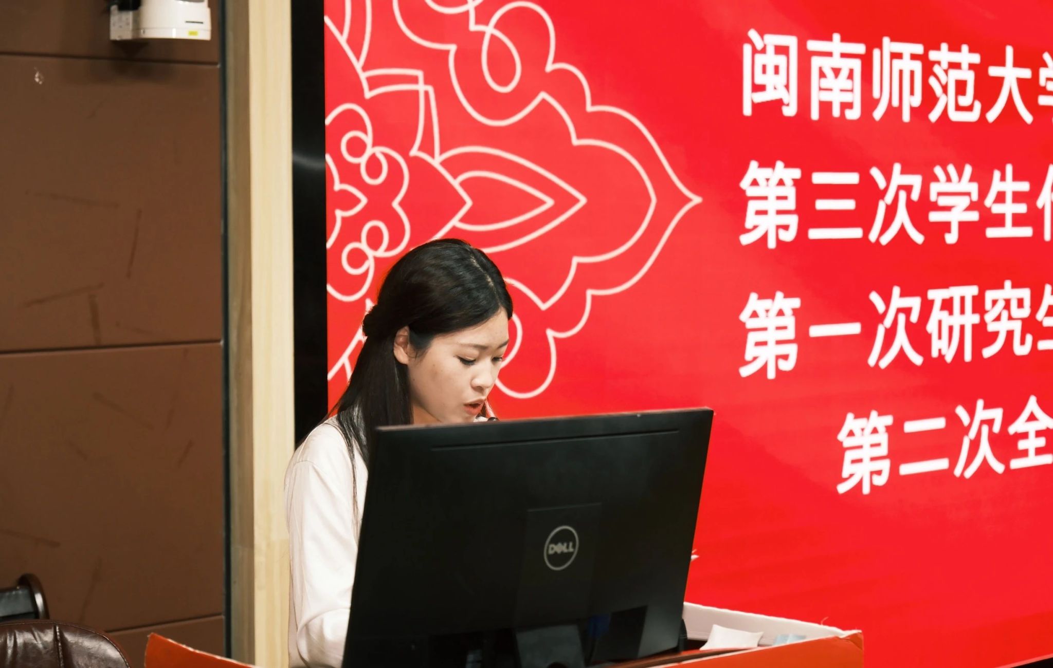 大会进行第一次全体会议,员工会主席团成员繆祉靖致开幕词并作工作报告,她全面回顾了过去一年员工会在维护员工权益、举办文体活动、促进学术交流等方面的努力与成就,并针对问题作出未来工作展望,努力做到加强思想引领、强化组织建设、丰富校园文化、提升服务水平。