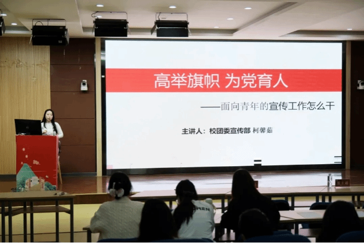 青年的理想信念关乎国家未来,做好青年宣传文化工作对于培养社会主义建设者和接班人具有重要意义。校团委宣传部柯馨茹老师以“面向青年的宣传工作怎么干”为主题,深入剖析了青年宣传文化工作的重要性、任务目标、基本逻辑、特点规律以及路径方法,并详细介绍了新闻采编的相关知识和技能。