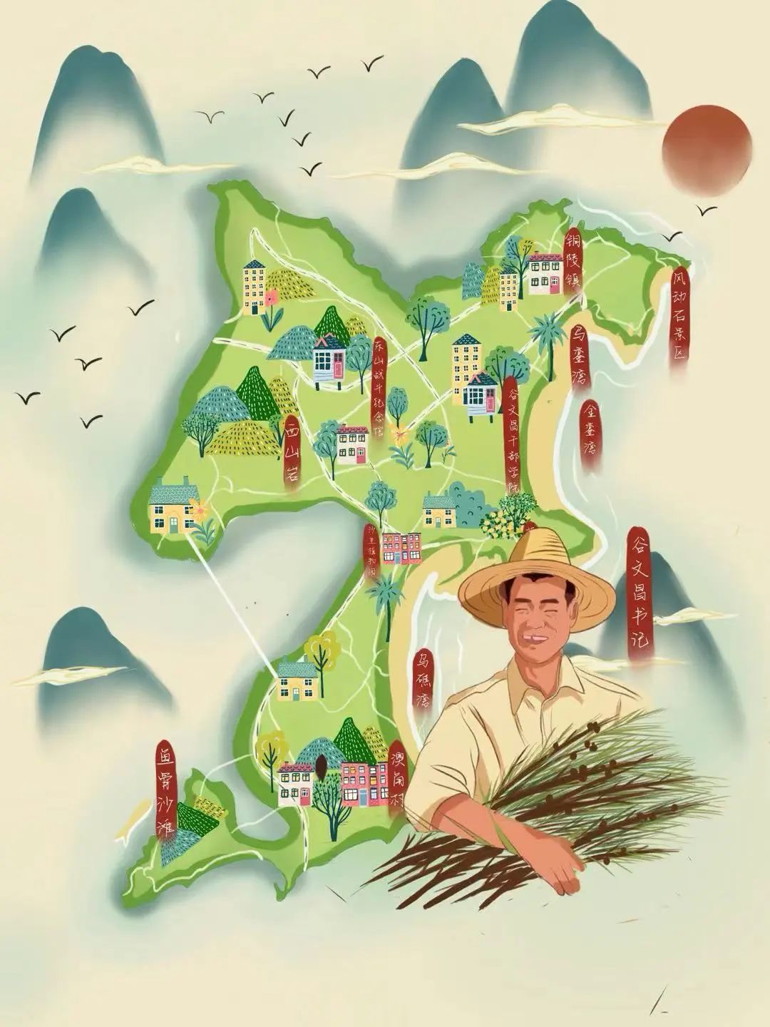 奋楫破浪,向海而兴。东山这片土地上,传承着关帝文化、蕴含着红色基因、闪耀着谷公精神。实践队成员们走访澳角村、谷文昌纪念馆、关帝文化产业园等地方,深入聆听谷文昌同志带领东山人民植树造林、治理风沙、造福百姓的感人事迹,用手中的画笔记录下东山岛的新变化、新气象,创作出反映乡村振兴成果的地图作品。