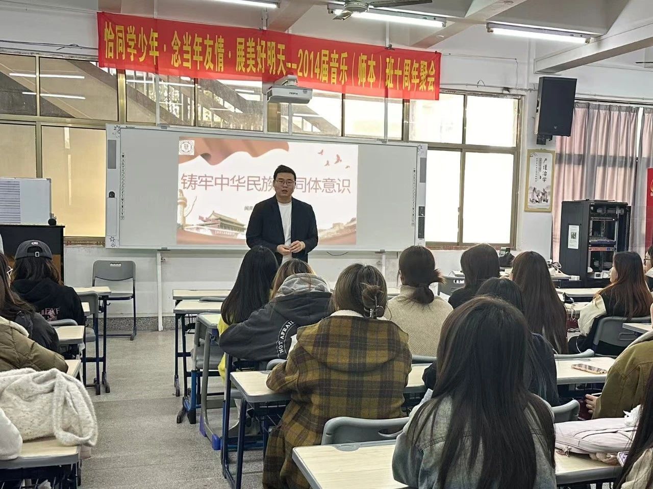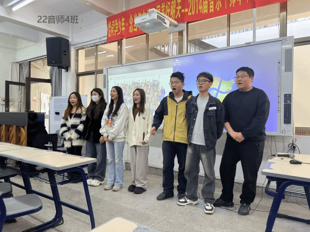 22级音师4班团支部举办了“乐韵同心・共筑中华”主题团日活动。活动中,同学们联唱《爱我中华》,激昂的歌声传递着对祖国的热爱,也让大家在音乐的感染下,深刻感受到中华民族大家庭的团结力量,展现了音乐文化在凝聚民族情感方面的独特魅力。