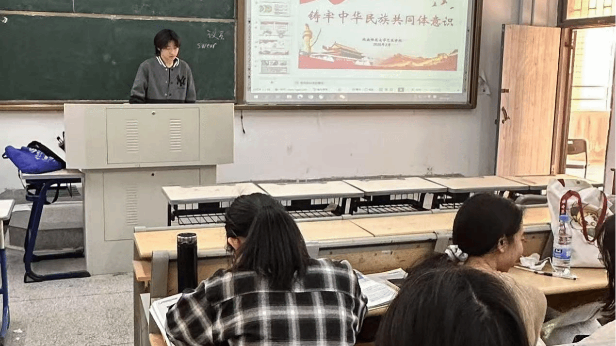 23级音师1班团支部开展的 “石榴籽”阅读季活动以“共源”“同心”“聚力”“同行”为主线,通过“同心书声”民族故事有声创作大赛、“文化漂流瓶”多民族书籍共读等系列配套活动,引导同学们在阅读中增强文化认同,厚植家国情怀。在“民族知识问答接力赛”线上活动中,同学们积极参与,展现出丰富的民族知识储备。