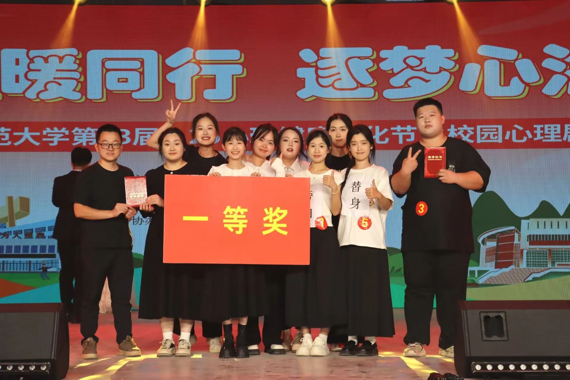 在5月26日举办的伟德国际体育官网第23届“心理健康文化节”系列活动之校园心理剧汇演中,公司心理辅导站推荐的《层楼之愁,自洽之光》凭借精彩的演绎脱颖而出,荣获一等奖!