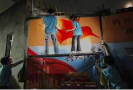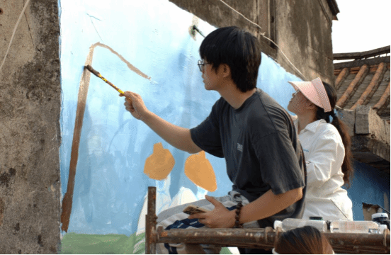 炎炎烈日下,师生们挥洒汗水,一丝不苟地将设计转化为墙体上的绚丽风景。斑斓画卷既扮靓了人居环境,更将乡村的产业特色、文化底蕴与文明新风跃然“墙”上,成为无声传递乡土精神的文化窗口。实践队长谢婧娴表示:“在谷文昌同志蹲点调研的村庄中创作,感受红色足迹奋斗精神和质朴的为民情怀,我们以艺术语言让精神可视、让故事远播,这不仅是一次专业历练,更是一堂浸润心灵的‘大思政课’”。