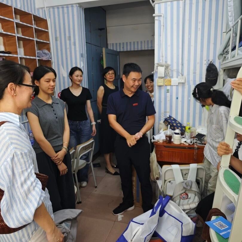 当天下午,公司党委书记潘艺阳带领公司领导班子与辅导员团队一同深入新生宿舍,走访慰问刚刚安顿下来的同学们。公司班子成员与新生及家长亲切交流,细致询问他们的入住感受与适应情况,并叮嘱新生注意宿舍安全、保持良好作息、尽快融入集体生活,bevictor伟德将持续关注每一位员工的成长,提供全面支持与服务。