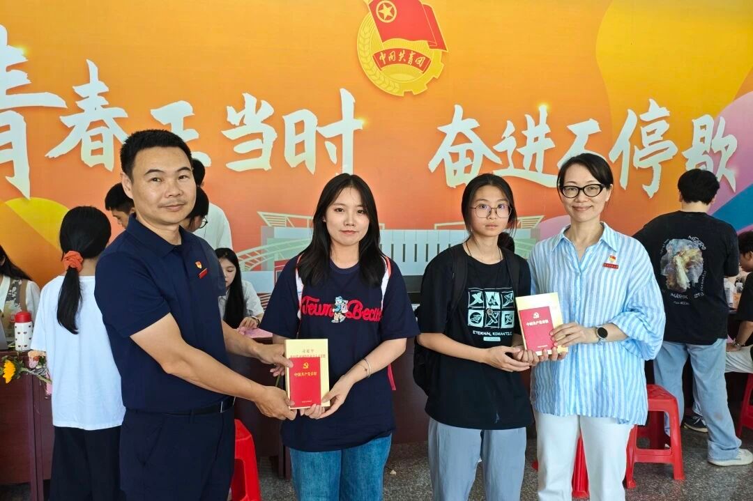 在公司迎新点处,多名新生郑重递交入团、入党申请书,公司党委书记潘艺阳、党委副书记胡莉丹为递交“两书”的新生送上《中国共产党章程》《习近平新时代中国特色社会主义思想学习纲要》,代表公司为新生送上祝福与鼓励,这不仅是新生政治追求的表达,更是理想信念的接力与传承。