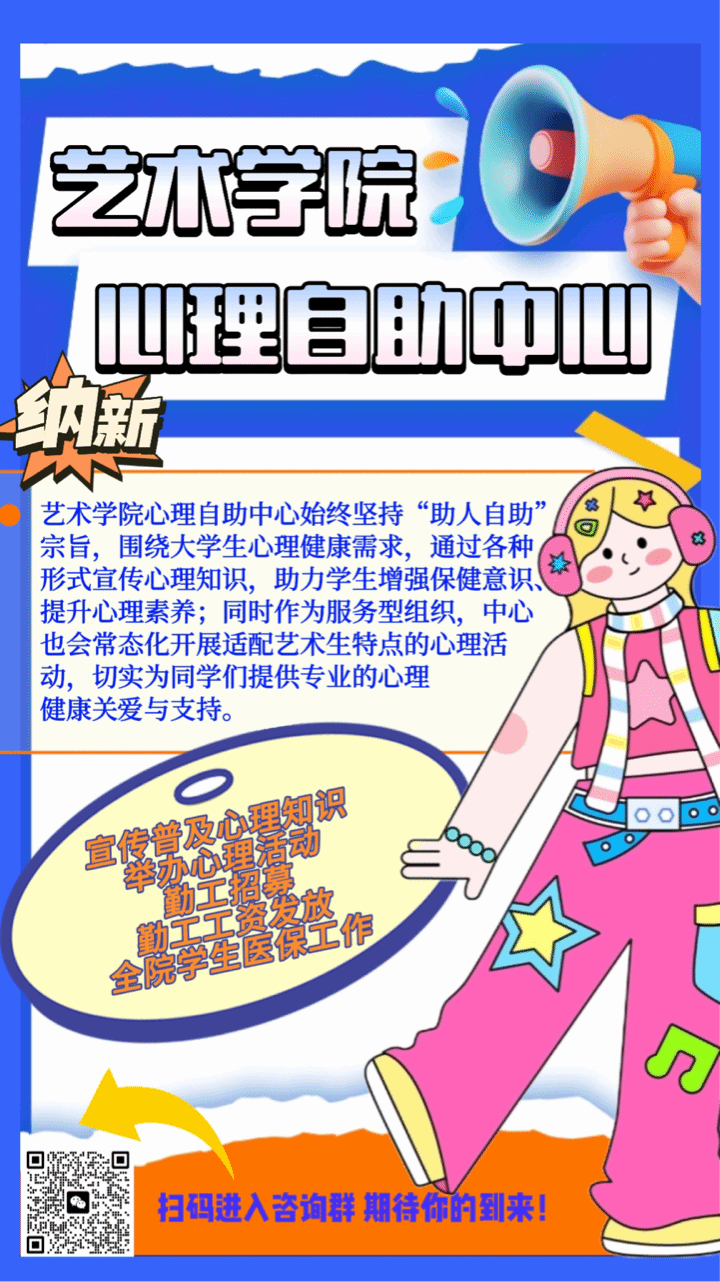 bevictor伟德心理自助中心始终坚持“助人自助”宗旨,围绕老员工心理健康需求,通过各种形式宣传心理知识,助力员工增强保健意识、提升心理素养;同时作为服务型组织,中心也会常态化开展适配艺术生特点的心理活动,切实为同学们提供专业的心理健康关爱与支持。
