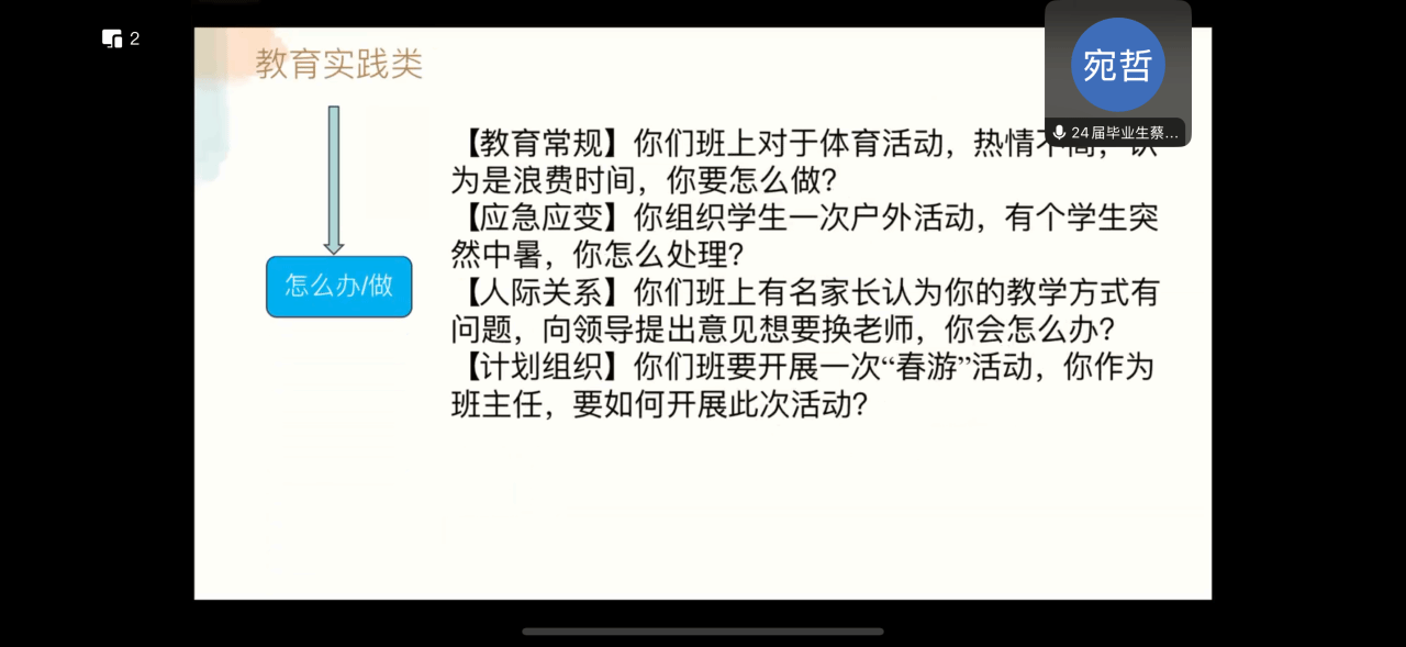 现任泉州市晋江市龙湖镇阳溪中心小学音乐教师的24届毕业生蔡宛哲聚焦结构化考试,分享了考试前准备和得分项的关键要点,帮助同学进一步了解教师结构化考试。