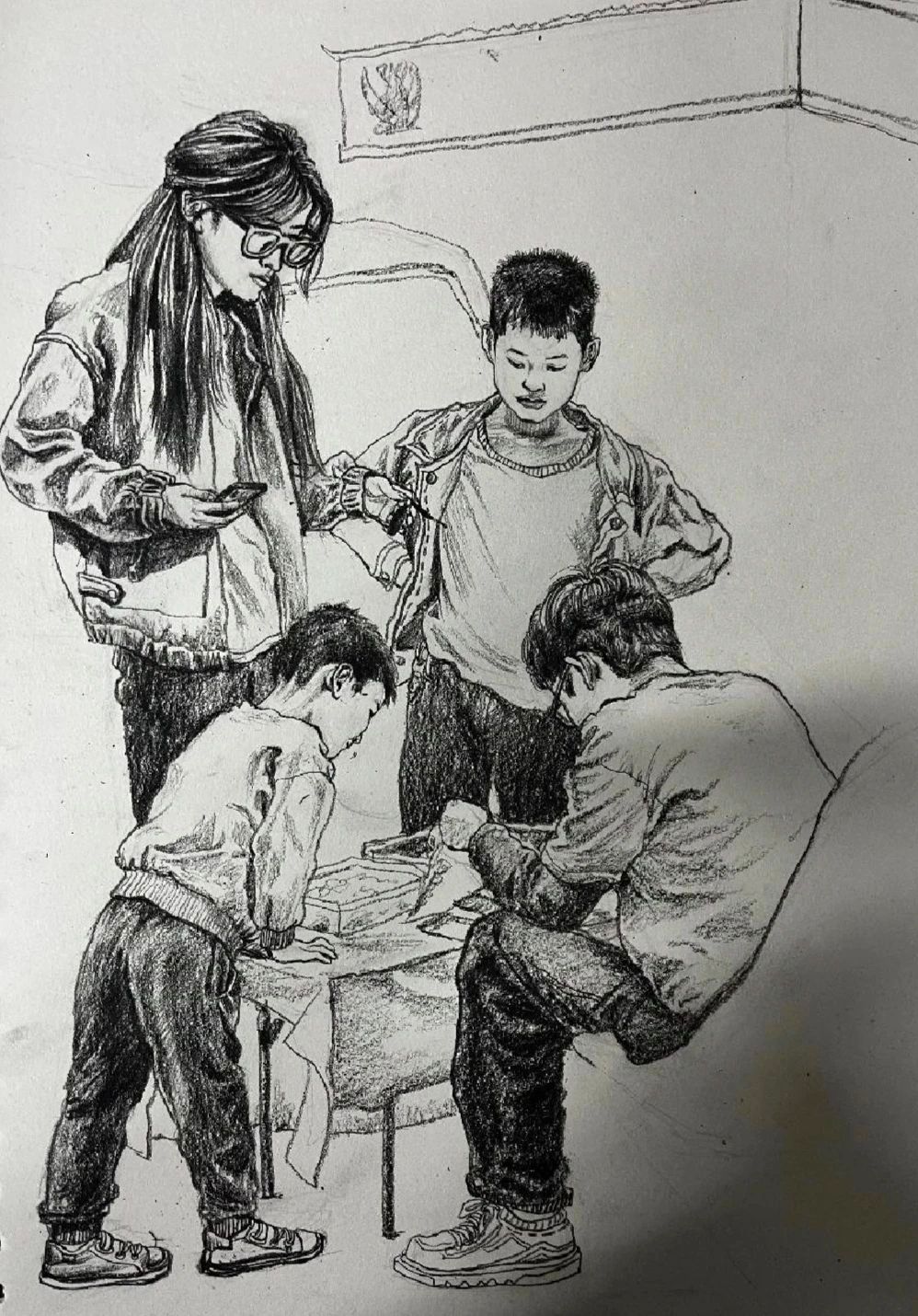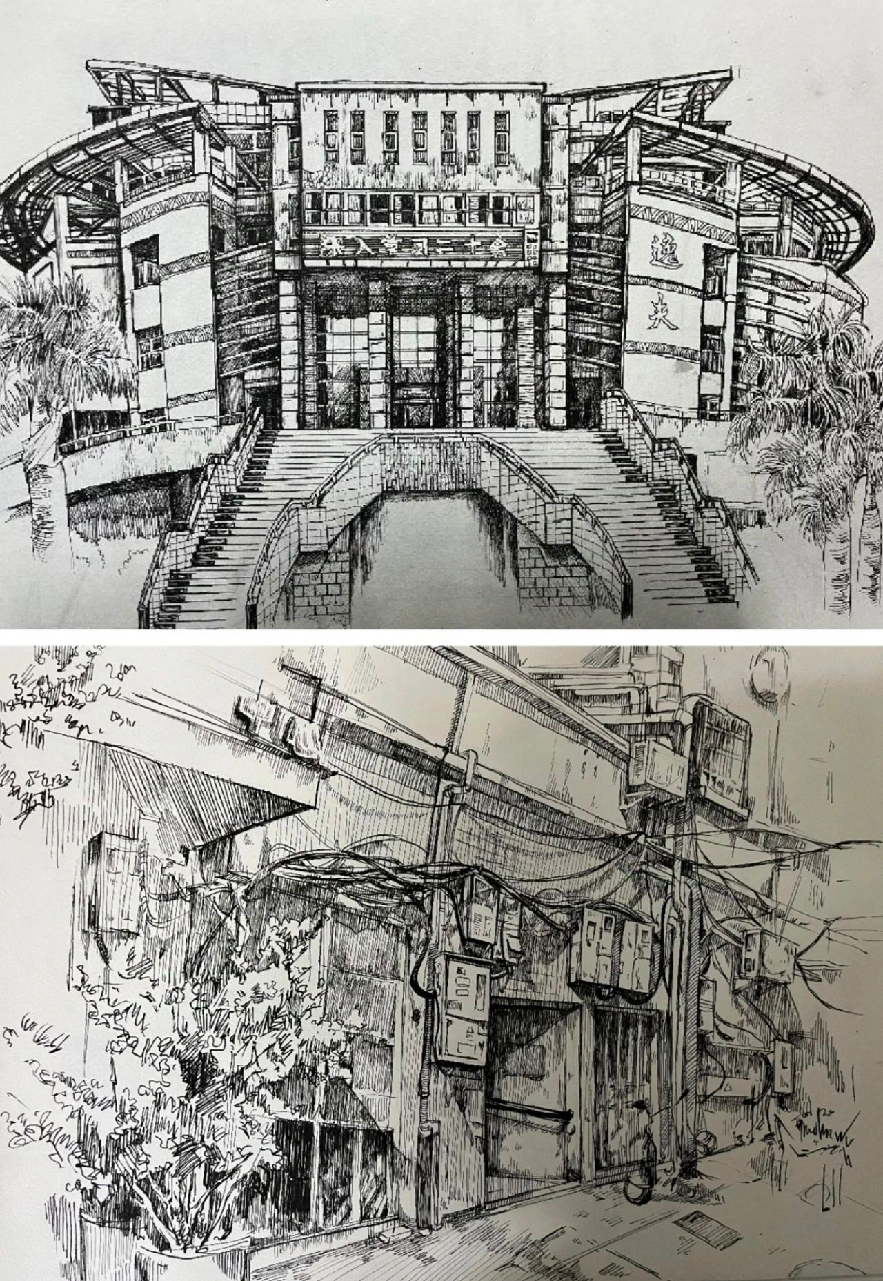 在美术学专业课程体系中,《速写与构图》是专业基础课程,训练员工的观察与表达,以及造型的能力。今年的课程中,要求员工将专业技能运用到现实生活中,描绘社会生活和校园学习图景。旨在通过实践深化提高对生活周边事物美的发现能力,并通过切身体验来激发创作潜能。在为期四周的学习时间里,同学们从刚开始无从下笔,找不到目标物,到逐步掌握速写与构图基本技巧,发现了身边的好多事物都可以拿来做描绘对象,能通过简单事物来表达丰富的内涵。绘画对象从教室的学习用具,员工学习场景,校园一角,食堂,到校外商贩,古城街道等等。他们展现了非凡的学习能力和创新精神以及对美的不懈追求。在这个过程中,同学们用各自不同的表现技巧,将个人情感与创意融入作品中,这些作品不仅展现了同学们的绘画技巧,更体现了他们对生活的热爱,对美的独到见解和深刻感悟。