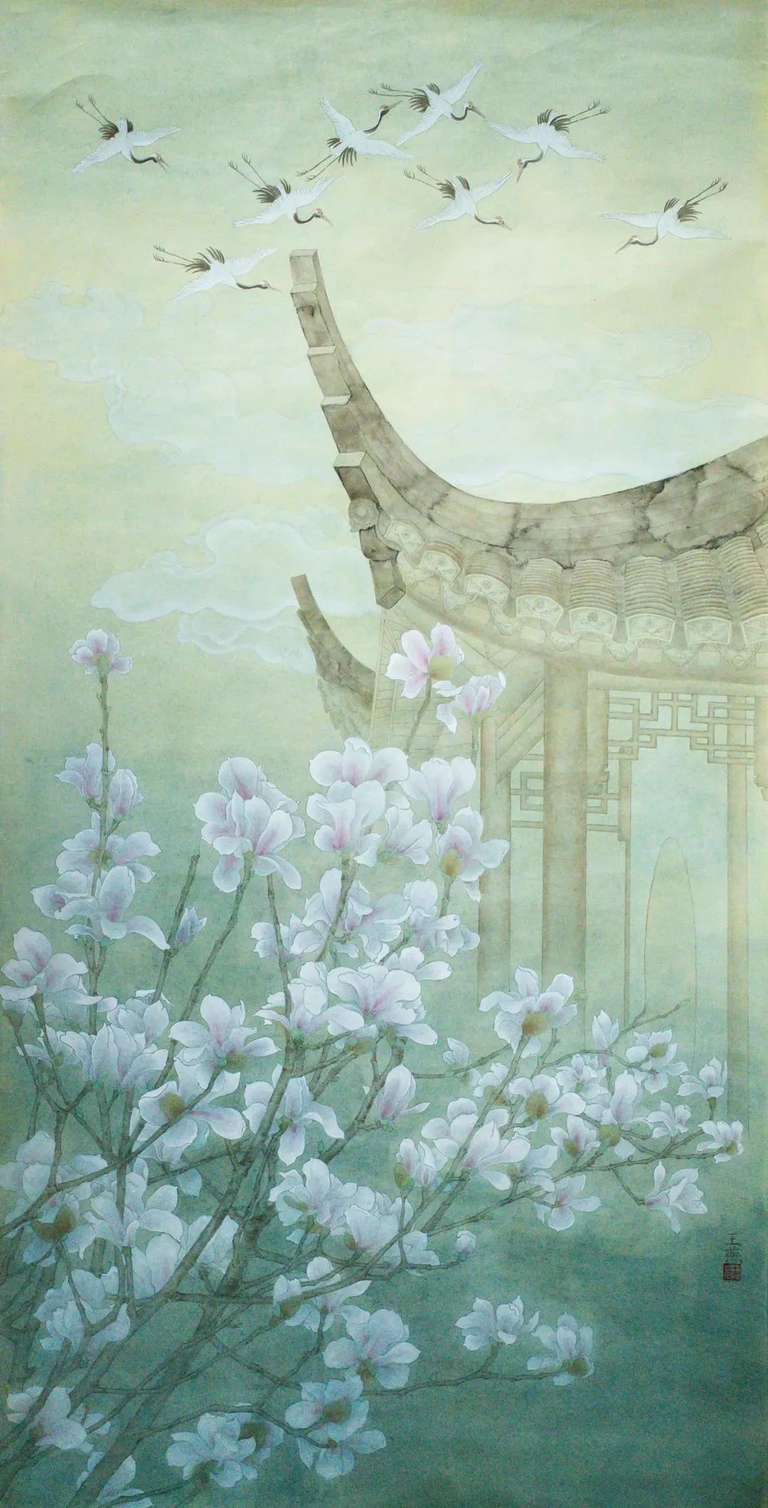 王燕 《玉兰迎曦,鹤引新风》 国画