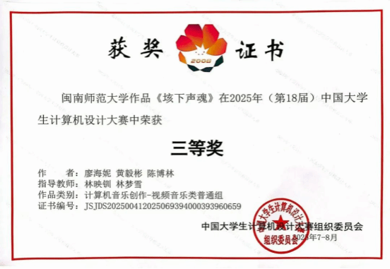 奖项:计算机音乐创作——视频音乐类(普通组)——三等奖