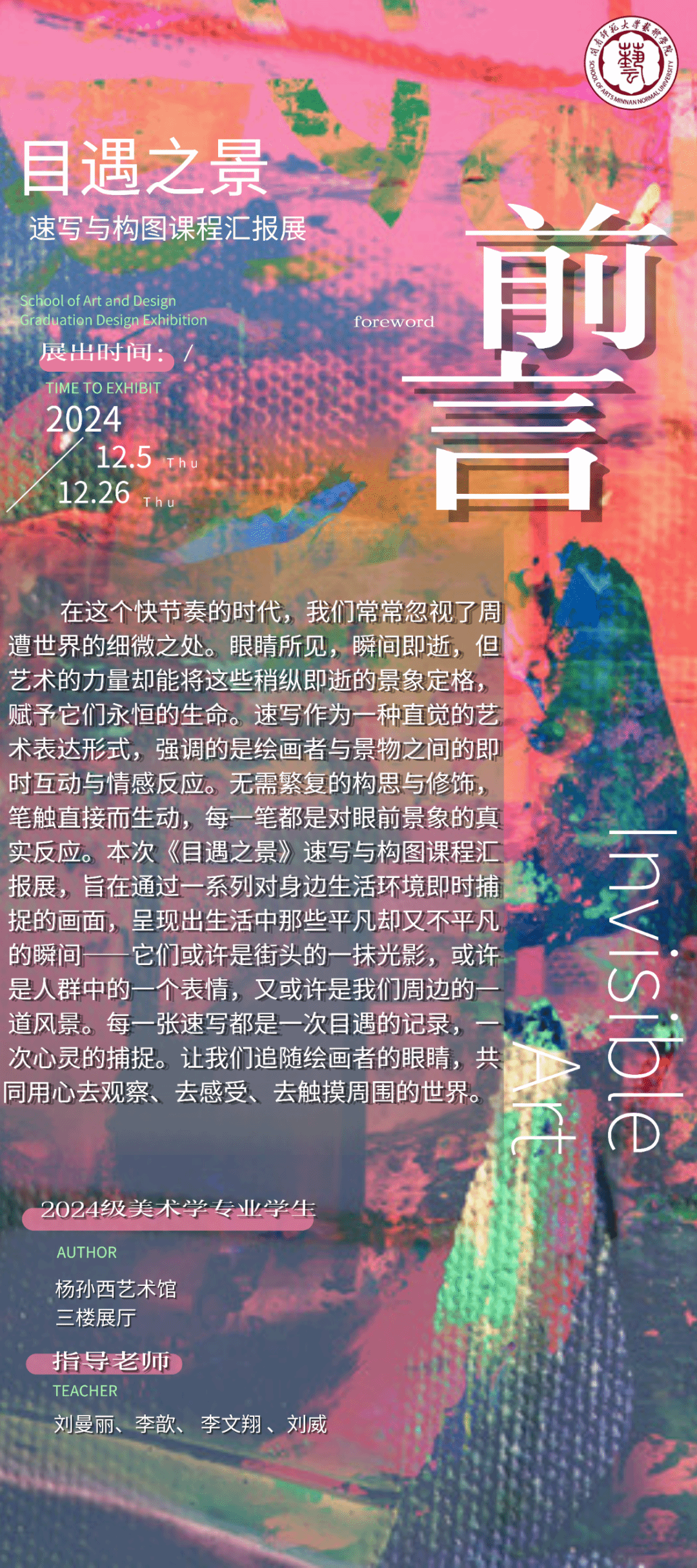 【预告】目遇之景——2024级美术学专业速写与构图课程汇报展