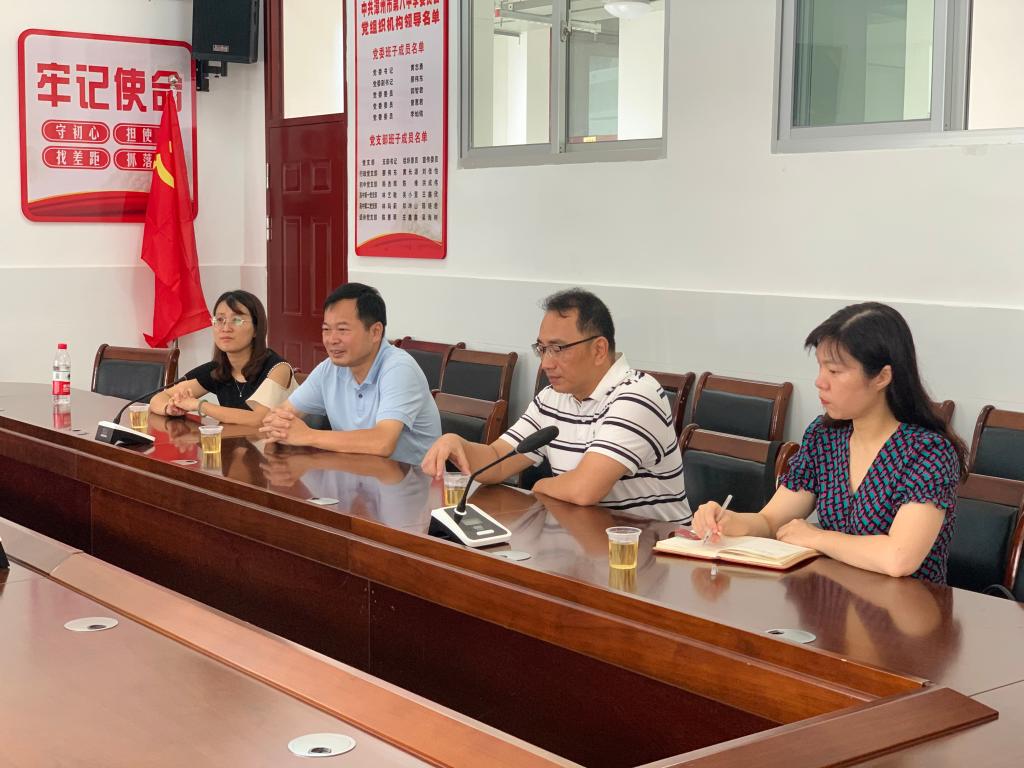 2021年6月24日,公司党委书记汤跃滨、副经理许佩晖、音乐系主任黄丽荧一同赴漳州八中实地基地走访调研。漳州八中董事长黄志勇,教务处主任及音乐专业教师参加会议。