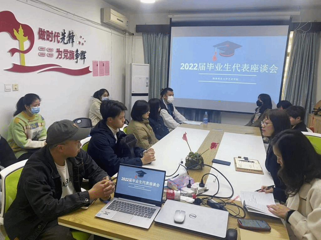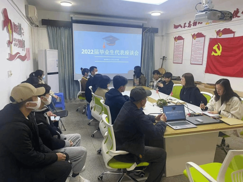 座谈会上,毕业生代表依次发言,就在校期间学习、生活上需要改进的地方,向公司提出了意见和建议。胡老师与同学们亲切交谈,她和同学们在学习场地与管理、公司基础设施的建设与完善、职业规划等方面进行了深入交流。