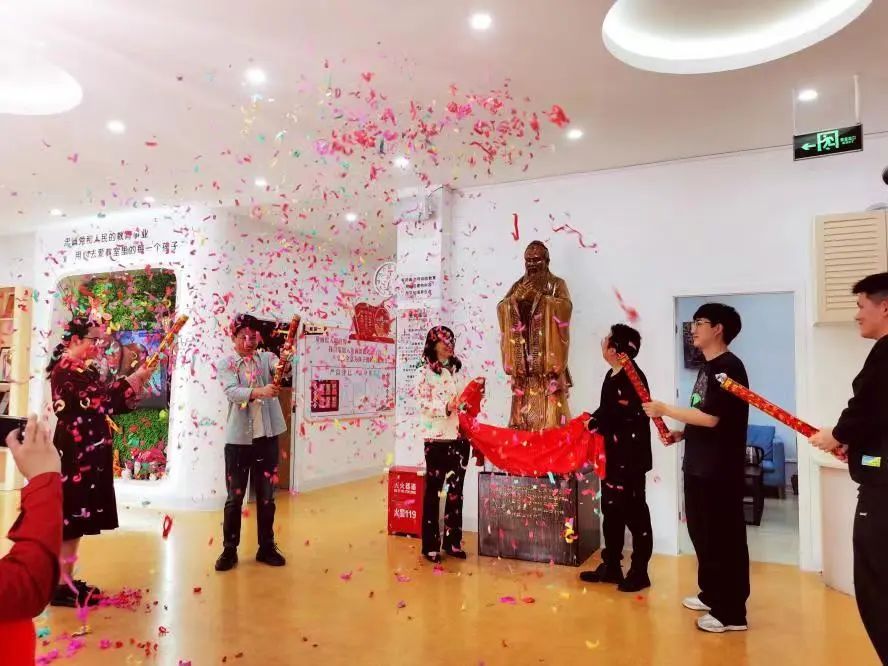 老师们在谢文旺老师的带领下,参观了参观了童画馆未来美学(高段校区),一同进行学术交流,一同体验版画绘制。座谈会上,谢文旺老师表达了对母校悉心培养的感恩之情,感谢学经理久以来对他创业以及以及成长路上的关怀和帮助,并表示将持续支持公司的建设与发展。座谈结束后,双方共同见证童画馆至圣先师孔夫子像的揭幕仪式。