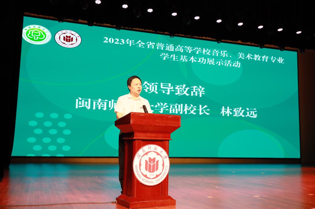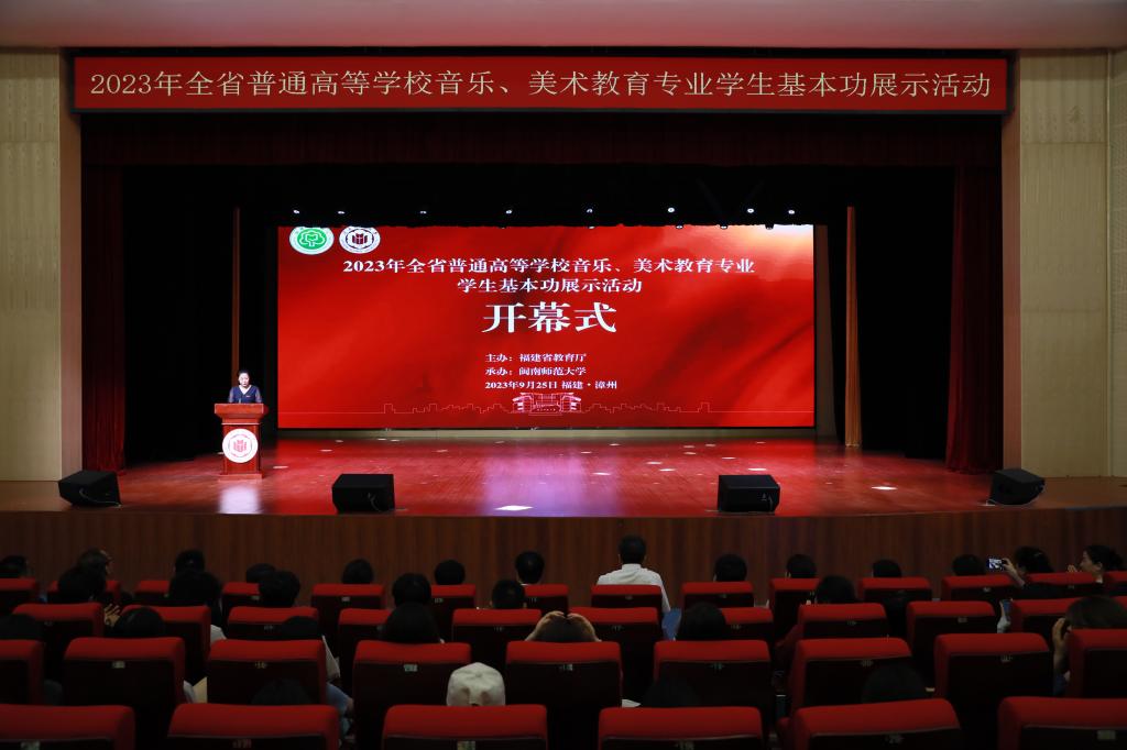 9月25日,由福建省教育厅主办、伟德国际体育官网承办的2023年全省普通高等公司音乐、美术教育专业员工基本功展示开幕式在闽南文化艺术中心多功能厅举行。省教育厅副厅长李绚、副董事长林致远出席,省教育厅体育卫生艺术教育与语言文字处处长苏贻堆、活动评委专家和参展师生参加开幕式。