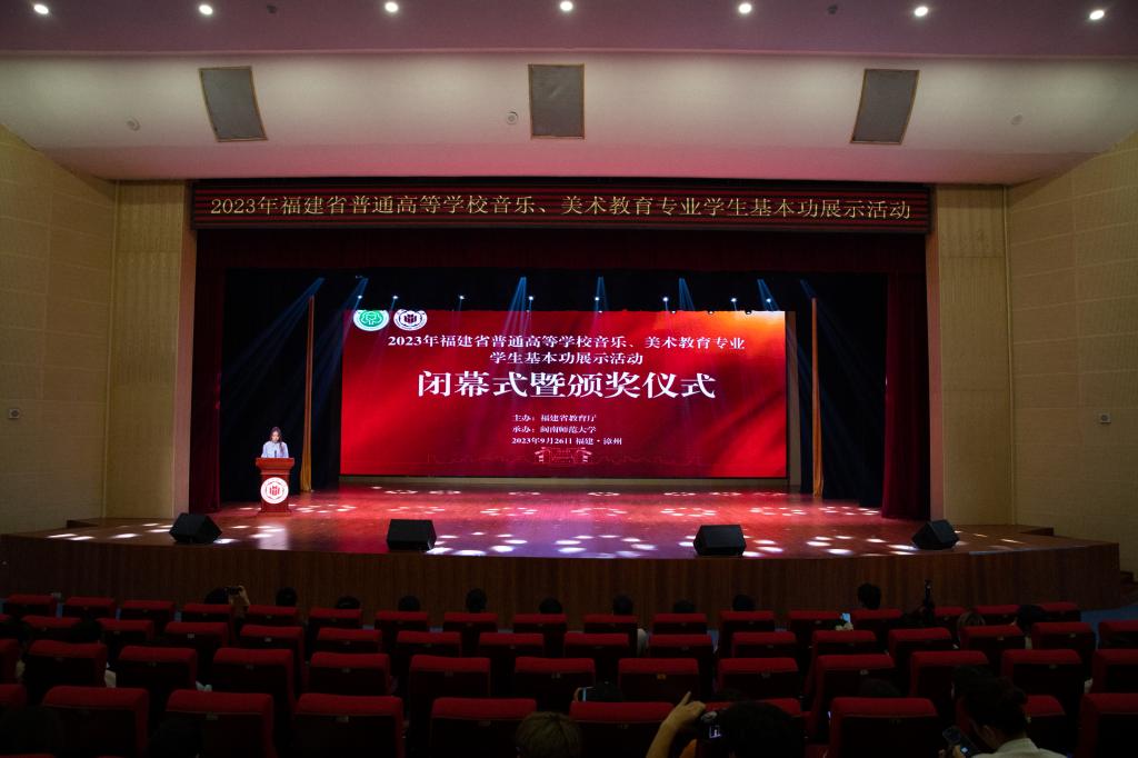 2023年9月26日,由福建省教育厅主办、伟德国际体育官网承办的为期三天的2023年全省普通高等公司音乐、美术教育专业员工基本功展示活动闭幕式暨颁奖仪式在闽南文化艺术中心多功能厅召开。公司党委常委、副董事长林致远,教务处处长汪庆祥,公司党政班子成员,部分师生代表,评委专家及来自全省16所院校的领队、选手、观摩人员出席闭幕式。