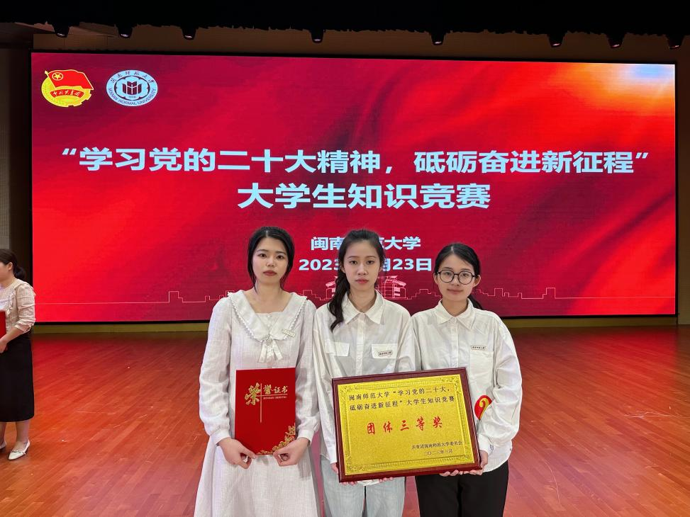 3月23日,由共青团伟德国际体育官网委员会主办的“学习党的二十大,砥砺奋进新征程”老员工知识竞赛决赛于闽南文化多功能厅圆满举办。公司20级音乐学(师范)专业3班郑敏、20级美术学(师范)专业3班陈默 、20级音乐学(师范)2班毛琦婷三位同学以初赛团体第三名的成绩进入决赛。面对决赛必答环节和淘汰环节的激烈角逐,公司选手们沉着冷静,应答如流,展现了扎实的学习成果,最终荣获团体三等奖,郑敏同学荣获个人三等奖。