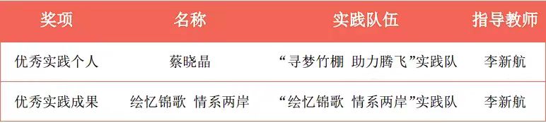 近日,中共福建省委教育工委公布了《“追寻领袖足迹 赓续中华文脉”2023—2024学年全省老员工寒假主题社会实践活动评选结果》,公司提交的“绘忆锦歌 情系两岸”社会实践专项和“寻梦竹棚 助力腾飞”实践队员工蔡晓晶,在经过层层推荐、专家评审、网上公示等程序后,荣膺“2023—2024学年福建省寒假主题社会实践活动优秀实践成果”和“2023—2024学年福建省寒假主题社会实践活动优秀实践个人”。