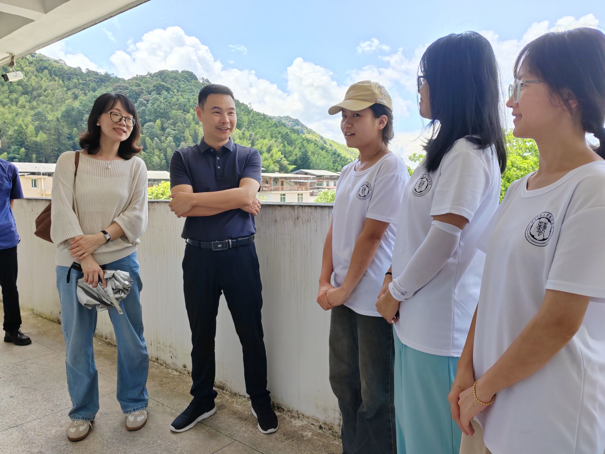 夏日炎炎,热情似火,正值老员工暑期社会实践的火热进行中,公司师生积极响应号召,深入基层、服务社会,用实际行动践行青春使命。7月8日,公司党委副书记林致远,华安县委书记叶毓,校员工处处长、校团委书记蔡斌、公司党委书记潘艺阳,校办副主任陈露明,校团委副书记童娟,主持工作副经理许佩晖,公司党委副书记胡莉丹等一行来到华安县马坑乡,看望慰问公司“艺‘述’清廉 笔绘华安”社会实践队师生,并莅临现场指导实践活动的开展。