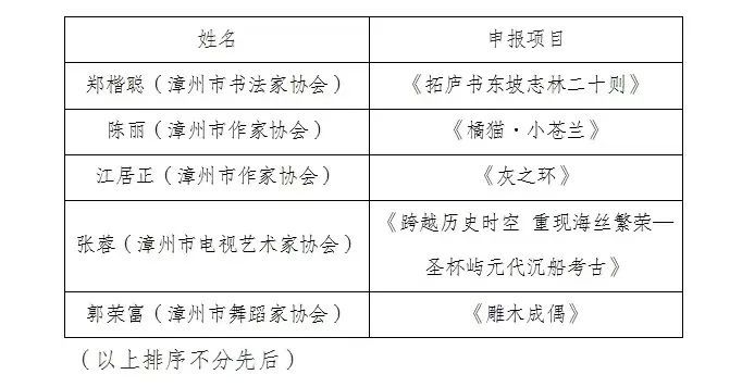 据悉该青年文艺人才创作项目,旨在推动漳州地区青年文艺专业人才的发展,进而培育一支具备高素质且专业化的文艺队伍。对于申报者有着明确的要求,即需在近两年内,获由中宣部、文旅部、中国文联以及省、市相关部门所主办的各类文艺比赛奖项。此外,市文联所属文艺家协会在推荐申报人员时,只能推荐1-2人,以此确保选拔的精准性与高质量性。