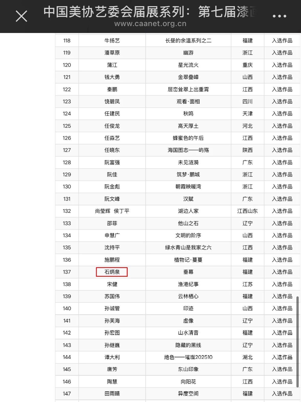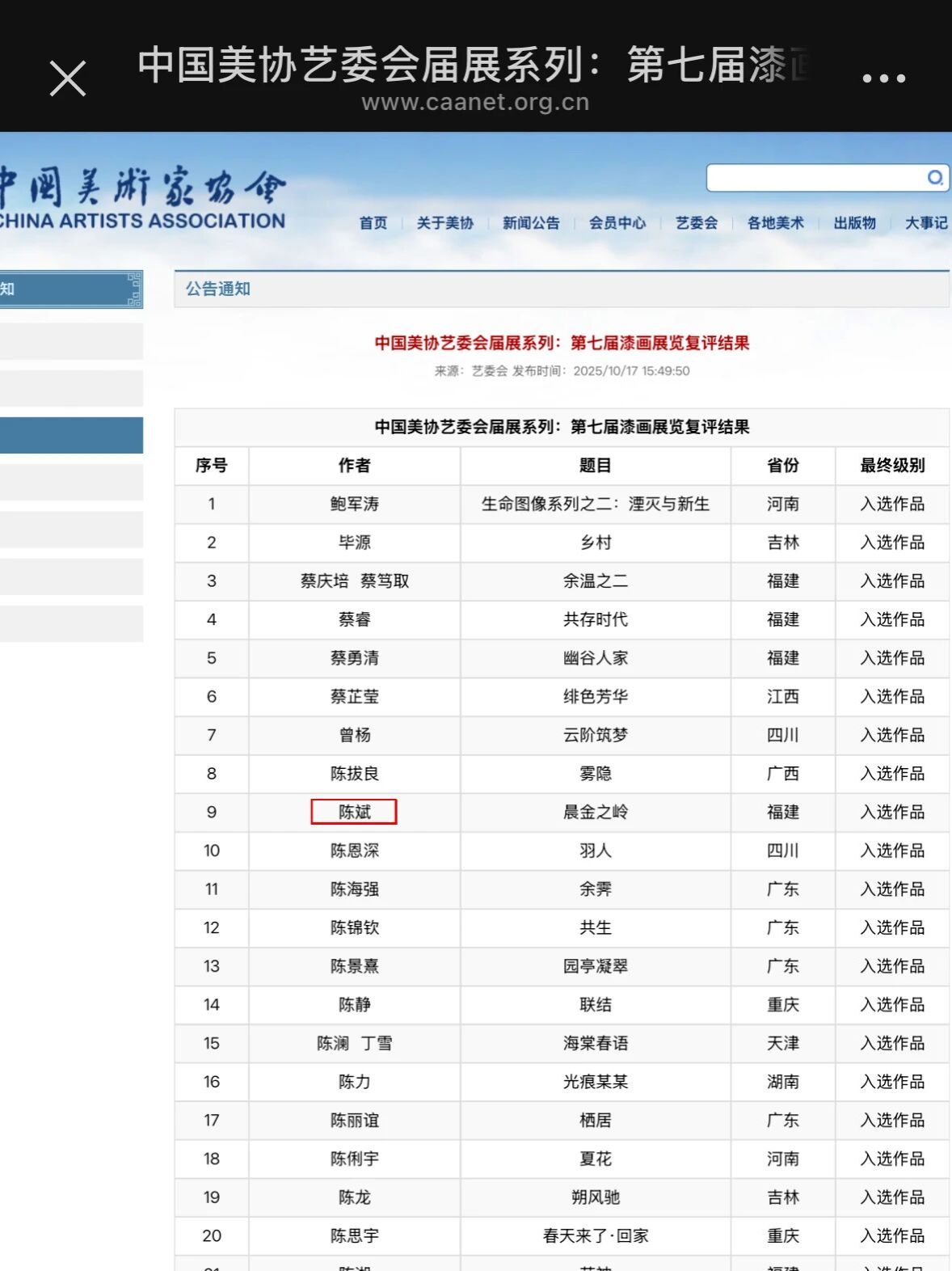 全国漆画展是中国美术家协会主办的漆画领域最高规格、最具权威性的国家级展览,代表了当前中国漆画创作的最高水平。本届展览竞争激烈,共收到全国各地投稿作品数千件,最终仅有254件作品入选。