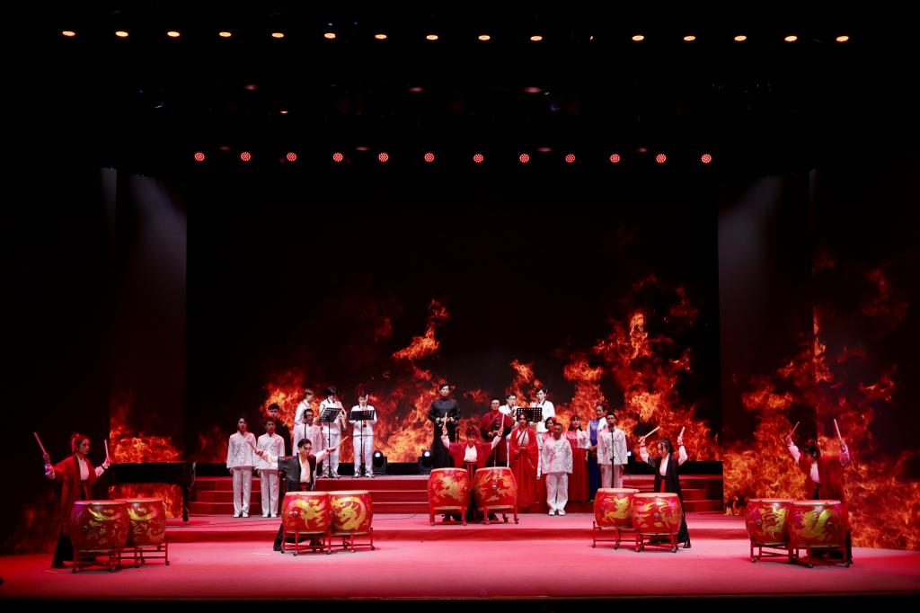 由10名专业教师和同学们共同演绎的《鼓乐中国》响彻云霄,群情激奋,鼓声响彻全场。