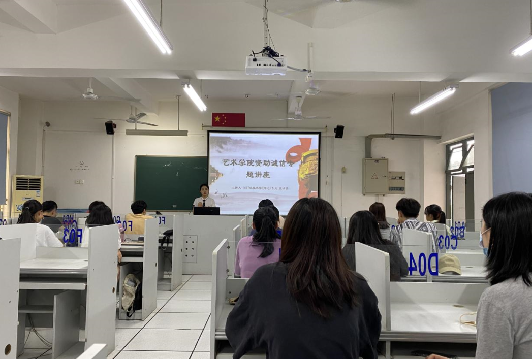 本次讲座由2017级美术学师范专业,连续三年国家励志奖学金获得者张冰倩主讲。张冰倩同学结合伟德国际体育官网资助政策体系,介绍了国家支持、公司专设、社会资助项目,强调国家以及高校对贫困生的资助,是帮助家庭困难员工完成学业的重要途径,在开展资助活动中,作为员工应该守住诚信准则;张冰倩同学从国家资助政策、守住诚信、诚信开展资助活动三个方面,向大家详细讲解了我国个人征信系统和相关法律政策以及不按时还款的危害,鼓励广老员工应常怀一颗感恩之心,诚信做人、诚信还贷,远离不良“校园贷”,引领社会新风尚。