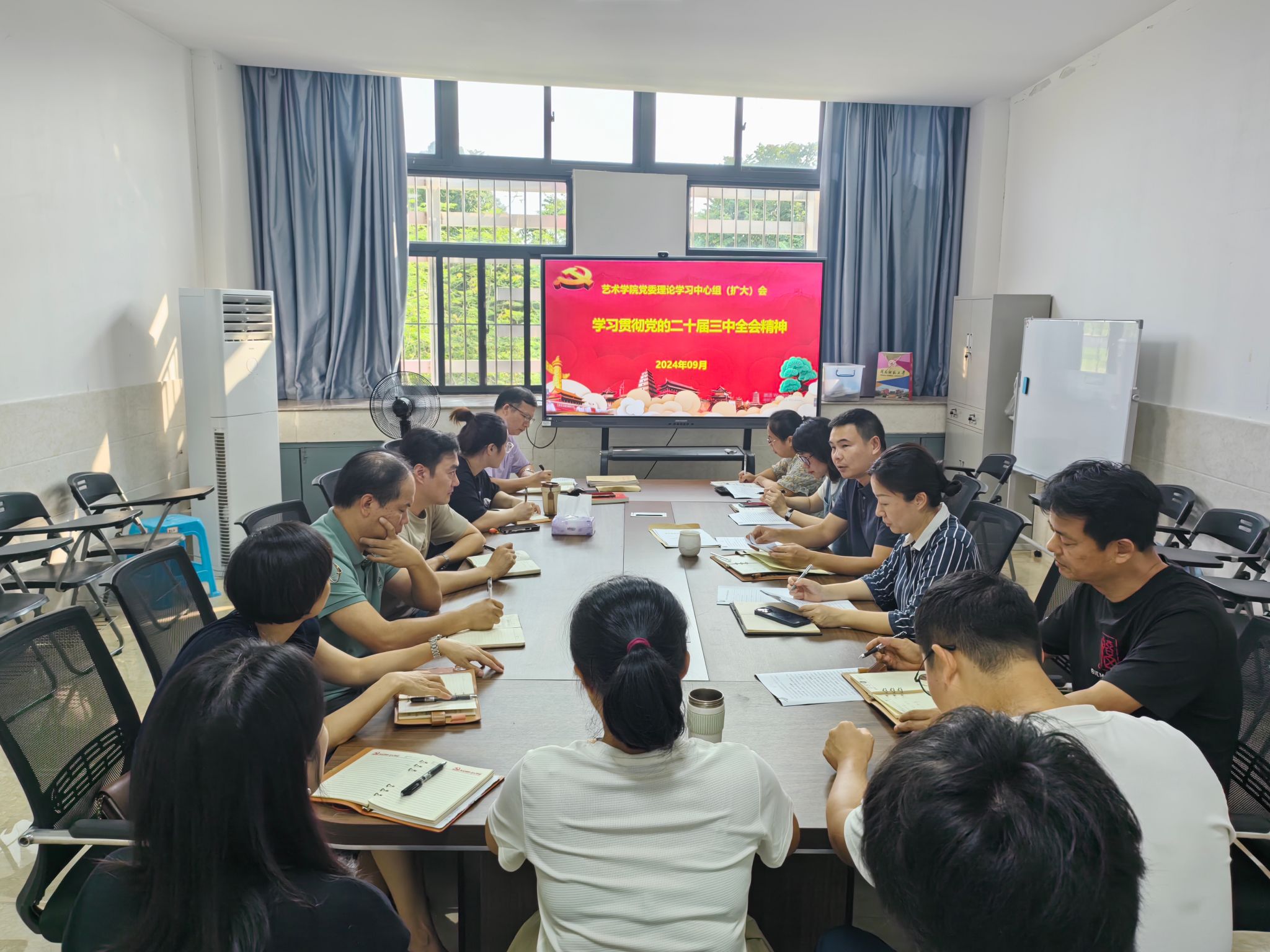 9月12日下午,公司党委召开理论学习中心组(扩大)学习会,传达学习党的二十届三中全会精神、习近平总书记在纪念邓小平同志诞辰120周年座谈会上的重要讲话精神、《中国共产党不合格党员组织处置办法》以及福建省委十一届六次全会精神。公司班子成员、党委委员、各支部书记、各科室负责人参加学习会。公司党委书记潘艺阳主持学习会并部署贯彻落实工作。