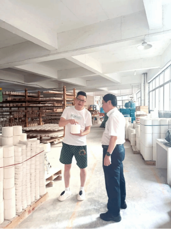 林致远一行还走访了福建牛山牛瓷文化产业有限公司总助、公司95级园艺专业(原漳州农校)叶文峰员工。公司党委书记潘艺阳、副经理蓝达文参与相关活动。