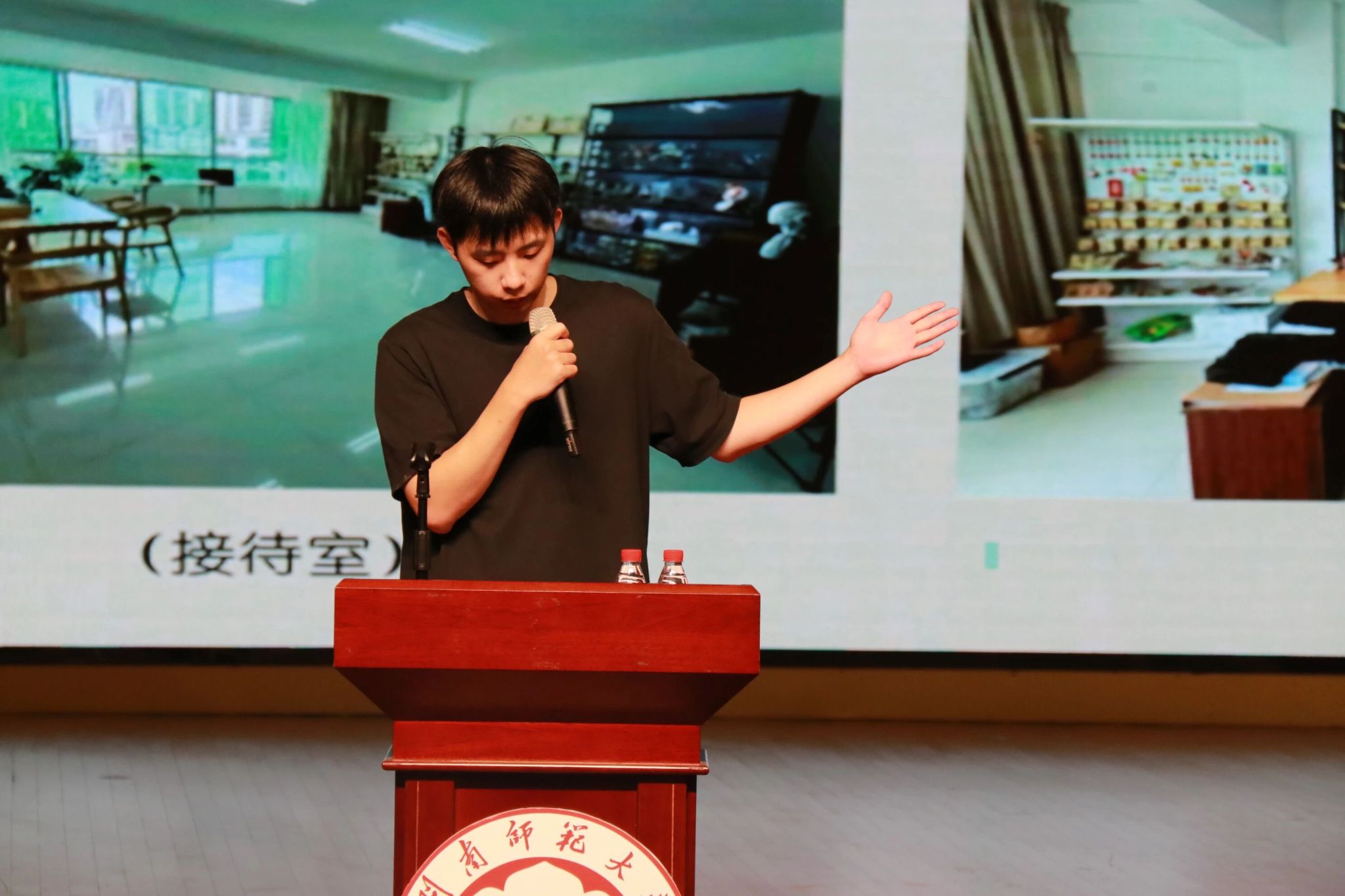 许海正则围绕“艺术赋能乡村振兴”展开分享。作为2024届毕业生和福建省老员工乡村振兴志愿者,他选择回到家乡诏安县深桥镇,投身基层文化建设。通过创立振翼工作室,他将闽南古厝、八仙茶、青梅产业等本土文化元素转化为文创产品,并成功与多位明星艺人合作,让诏安文化走上更广阔的舞台。最后,他还鼓励学弟学妹们:“无论选择城市还是回乡,只要坚定信念,都能在自己的舞台上发光发热。